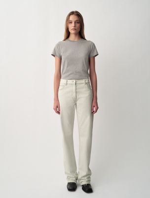 A slim, tapered fit in mid-weight 100% cotton denim. Cut with a mid-rise waist. Finished with a signature logo patch at the back waist.