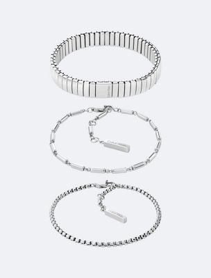 • includes expandable bracelet, cylinder link bracelet and box chain bracelet