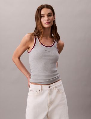 Contrast Trim Ribbed Logo Graphic Tank Top