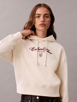 Fleece Script Logo Graphic Cropped Hoodie