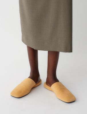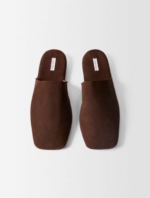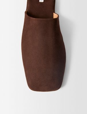 Refined mule with a clean, understated design. Featuring a high vamp and slightly square toe. Crafted from a soft suede leather, its minimal silhouette pairs perfectly with tailored outfits as well as casual wear.