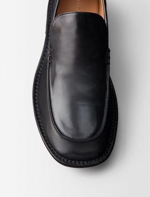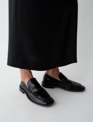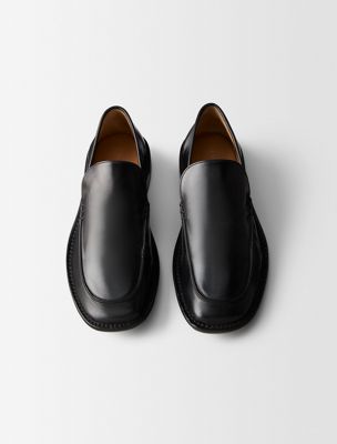Loafer with a slightly square toe, crafted from buffalo leather. The upper is finished with double stitching and a subtle embossed pattern offering sophisticated charm inspired by the 1970s.