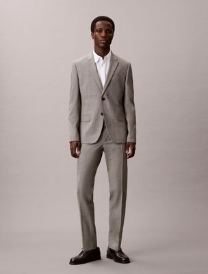 Elevate your style with Calvin Klein men's suits, crafted with precision and sophistication. Experience tailored excellence with wool stretch or organic cotton blazers and suit trousers. The seamless blend of comfort and style sets the tone for a powerful and polished look. Choose from versatile colours that effortlessly transition from the boardroom to formal events. Add a Calvin Klein belt as a refined accessory. Choose smart shoes that complement the colour of your suit for a well-coordinated appearance. Complete the look with a timeless watch, showcasing your attention to detail and punctuality. Whether it's a day at the office or a wedding celebration, Calvin Klein men's suits effortlessly blend modernity and classic tailoring. So you can make a lasting impression. Calvin Klein suits. Stand out with confidence.