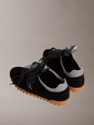 A playful spin on a retro running silhouette, these low-profile trainers are crafted from soft suede with feminine organza laces, contrasted by a bold toothy gum outsole and raw-cut deconstructed collar. Finished with an Airfit® cushioned insole for modern comfort.