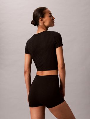 Embossed with an interconnected monogram logo motif, this Calvin Klein design is a statement sleepwear piece. Crafted from tubular fabric for a seamless, ultra comfortable feel.