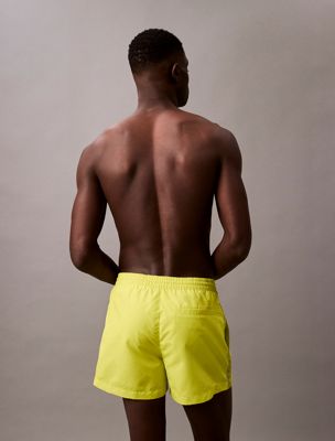 These swim shorts are made with 100% recycled polyester fabric, excluding trims. The recycled polyester is created by reprocessing existing materials.